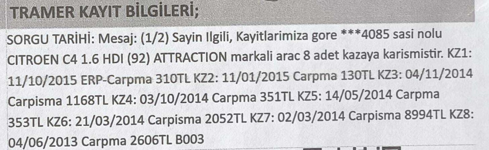 Hasar Ve Tramer Bi̇lgi̇leri̇
